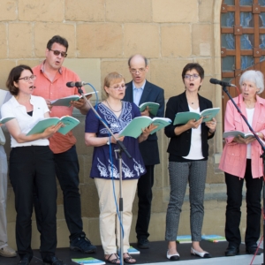 Solisten, Chor am Deutschordensmünster und Heilbronner Kantatenensemble, erweitert um Bläser und Schlagwerk musizieren die Missa festiva von John Leavitt (*1956) Leitung: Michael Saum