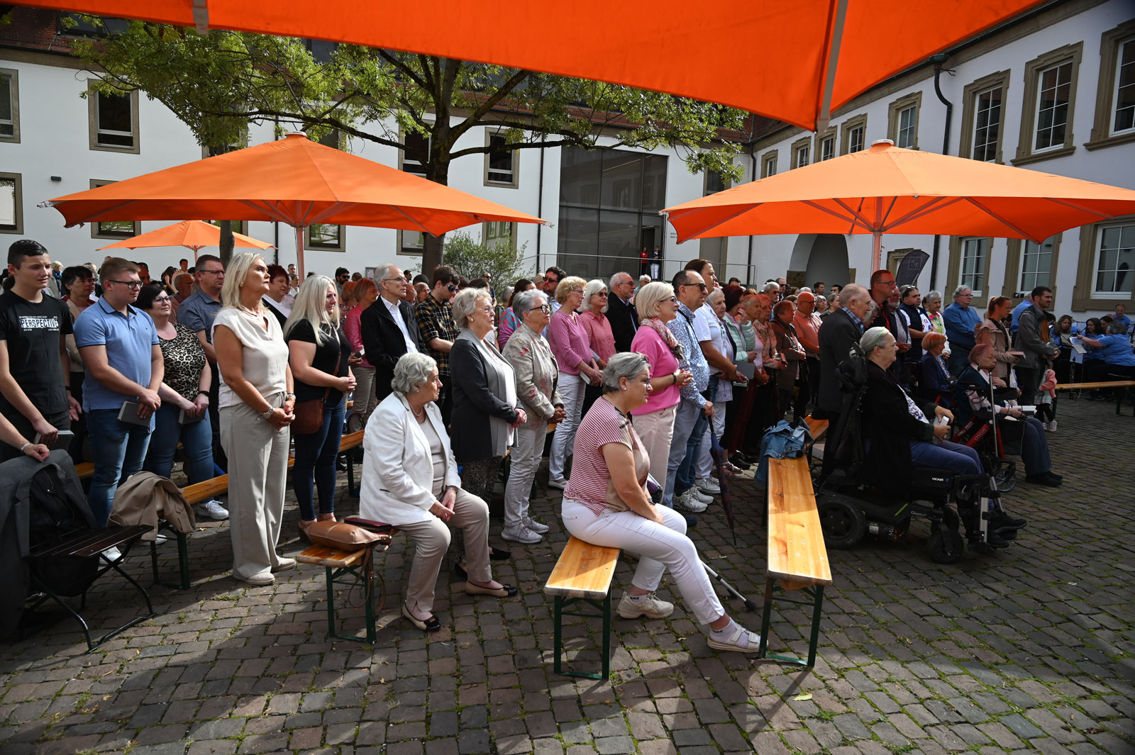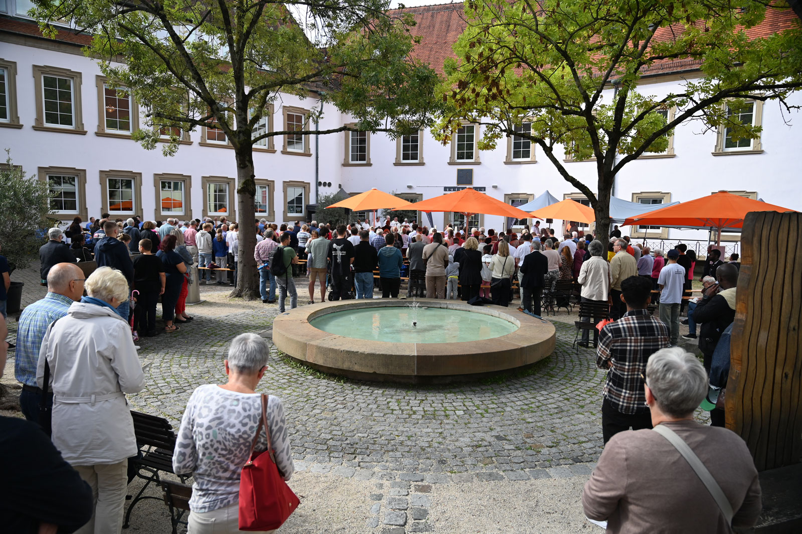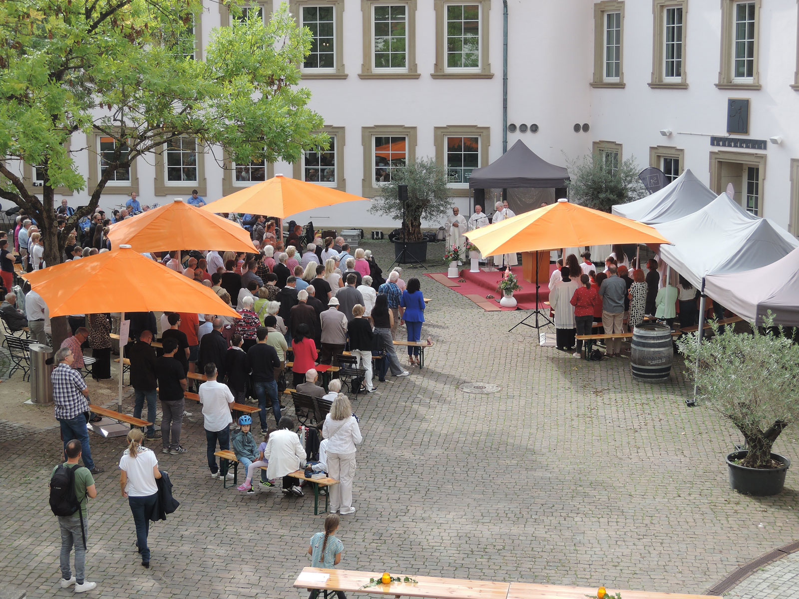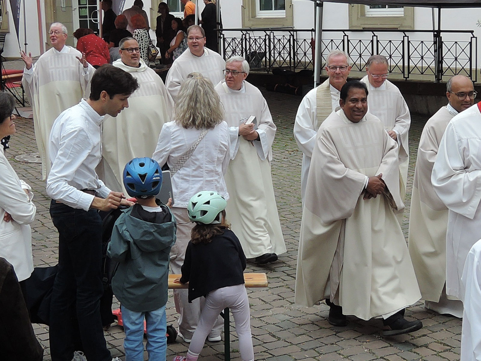 Das anschließende frohe Beisammensein vieler Sprachen und Generationen im Deutschhof zeigte eindrücklich, wie der Glaube an Gott alle eint. Natürlich trugen kühle Getränken und schmackhaftes Essen dazu bei.