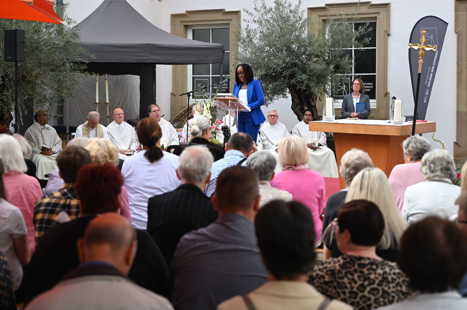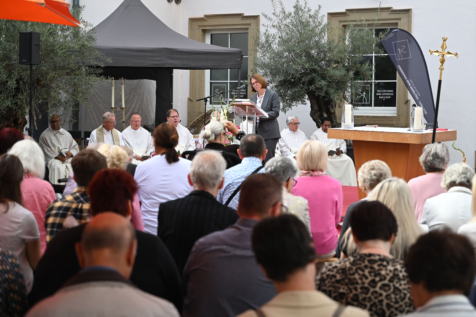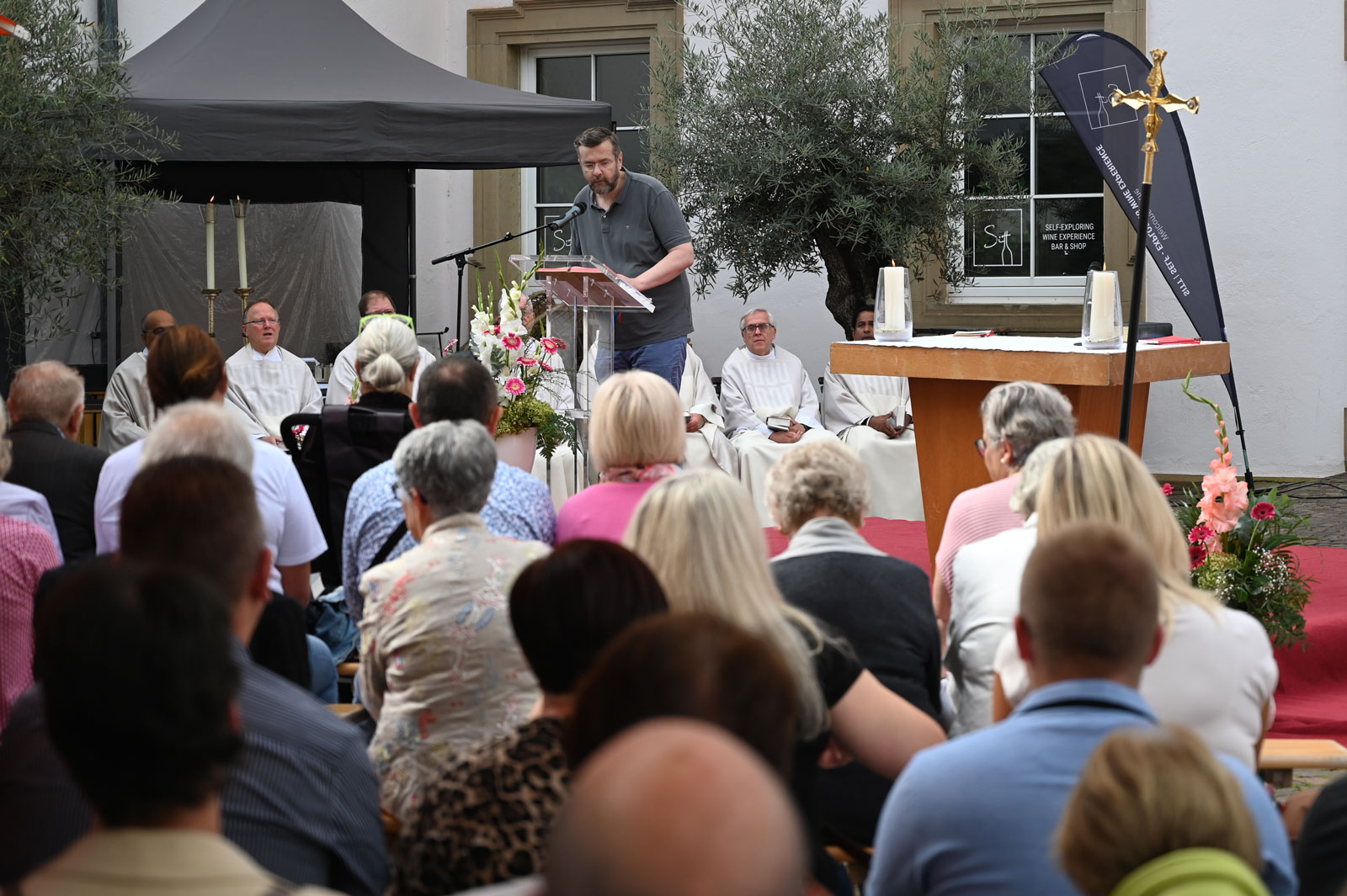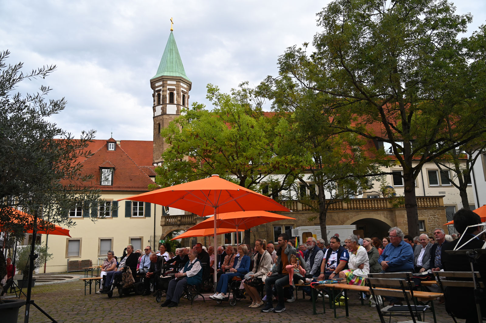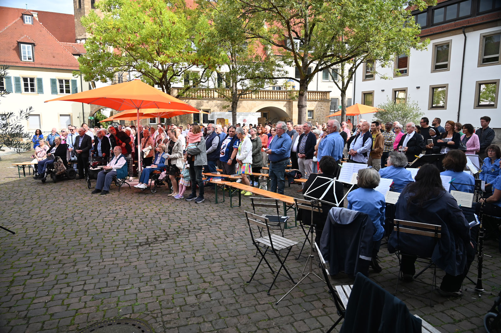 Das anschließende frohe Beisammensein vieler Sprachen und Generationen im Deutschhof zeigte eindrücklich, wie der Glaube an Gott alle eint. Natürlich trugen kühle Getränken und schmackhaftes Essen dazu bei.