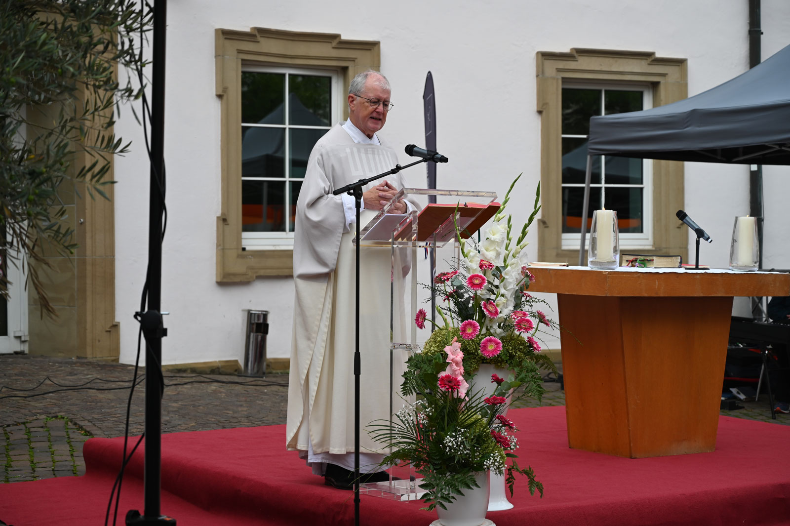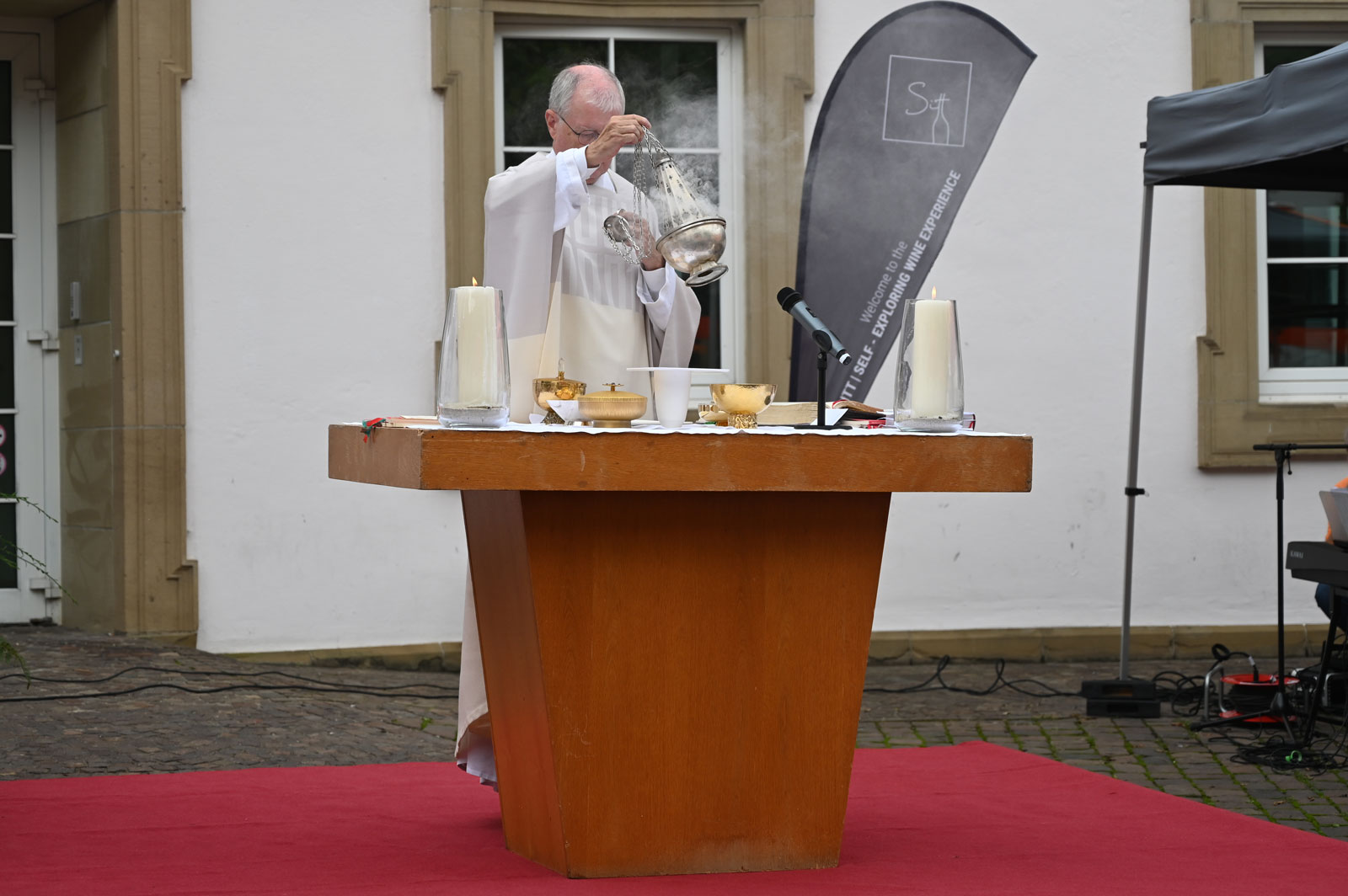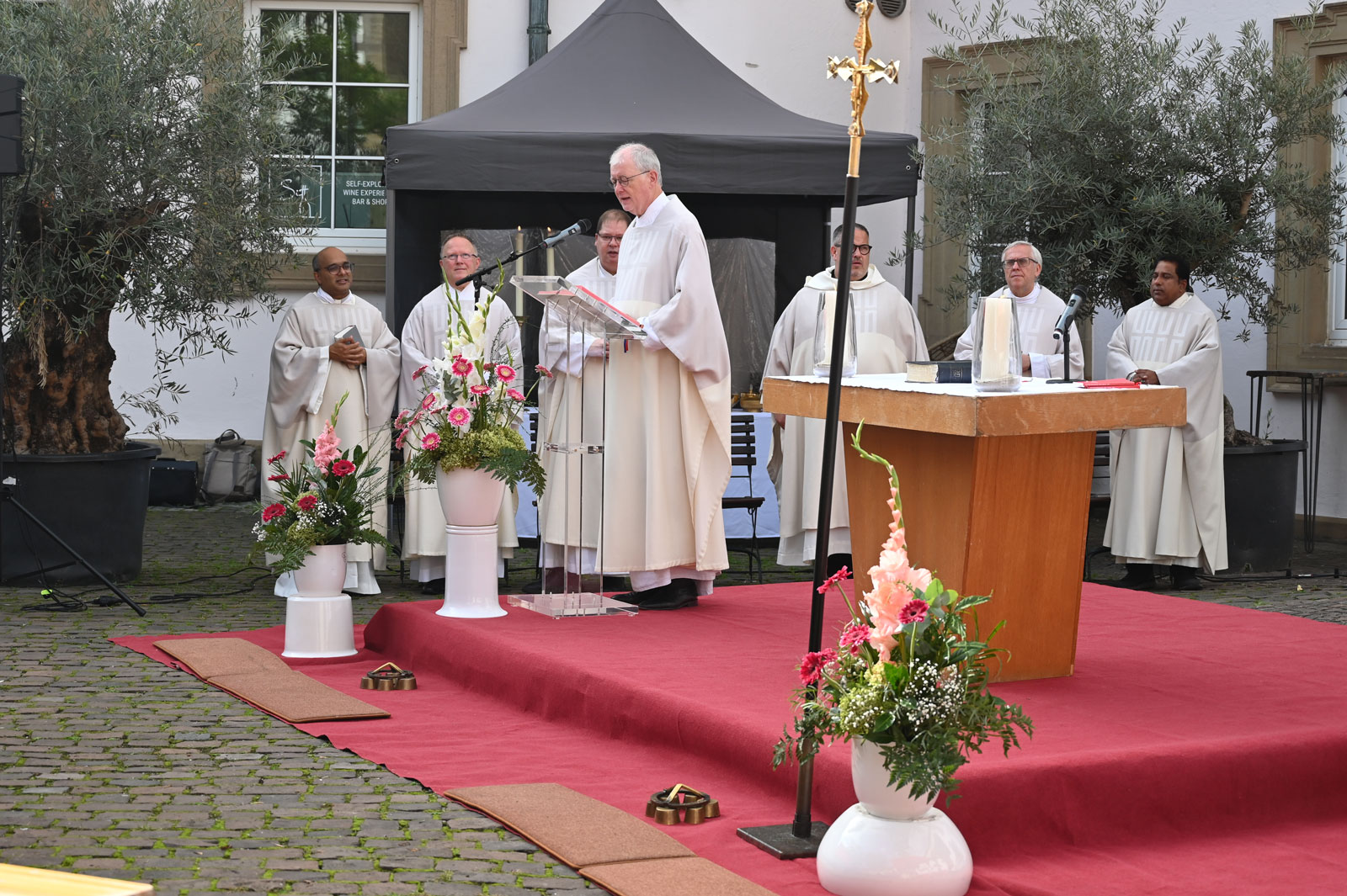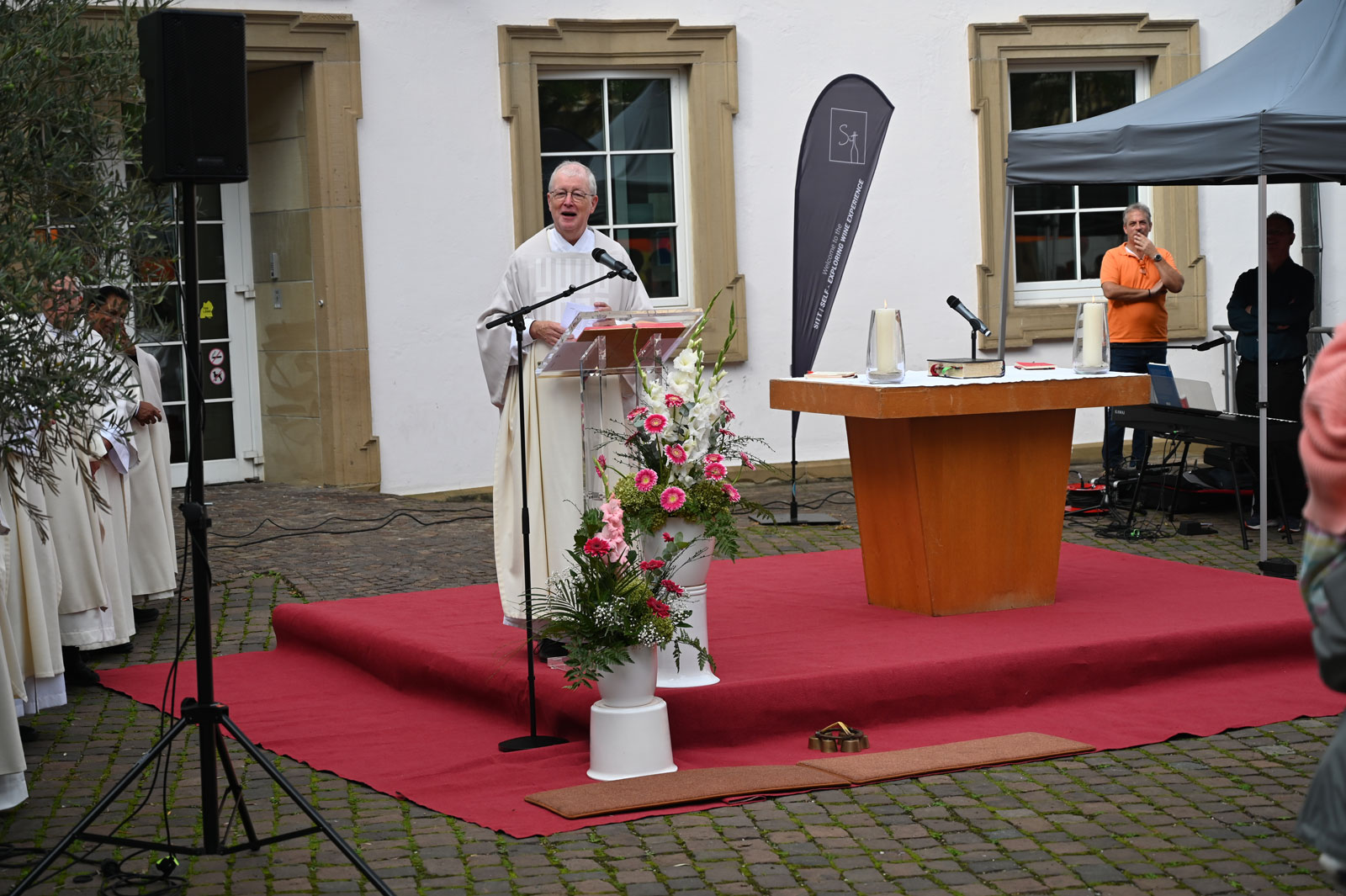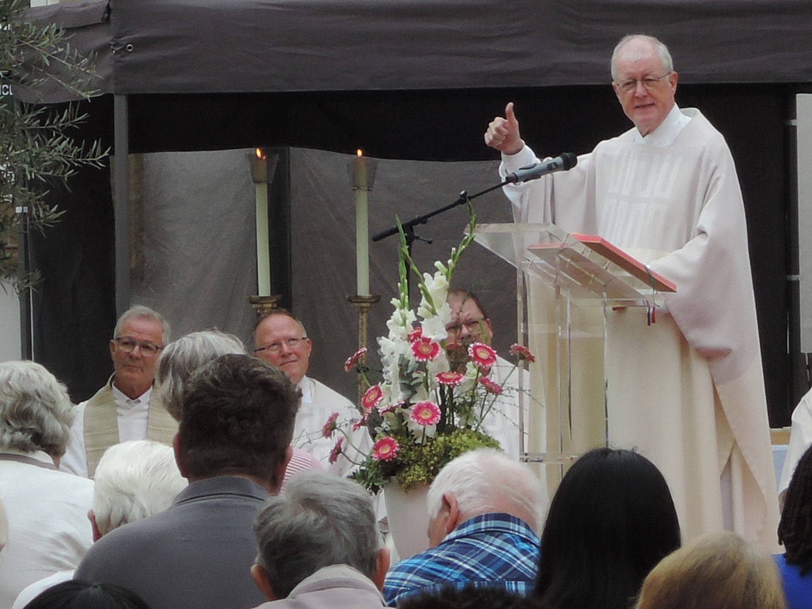 Ich danke Herrn Dylewski und Herrn Rapisarda, bei denen die Gesamtleitung lag und allen, die sie unterstützten. Allen, die auf irgendeine Weise mitgemacht, mitgefeiert, mitgeglaubt haben, (Ministranten, Ordnern, Mesnern, Himmel-Trägerinnen und -Trägern, Auf- und Abbauern) sage ich ein herzliches „Vergelt’s Gott“.