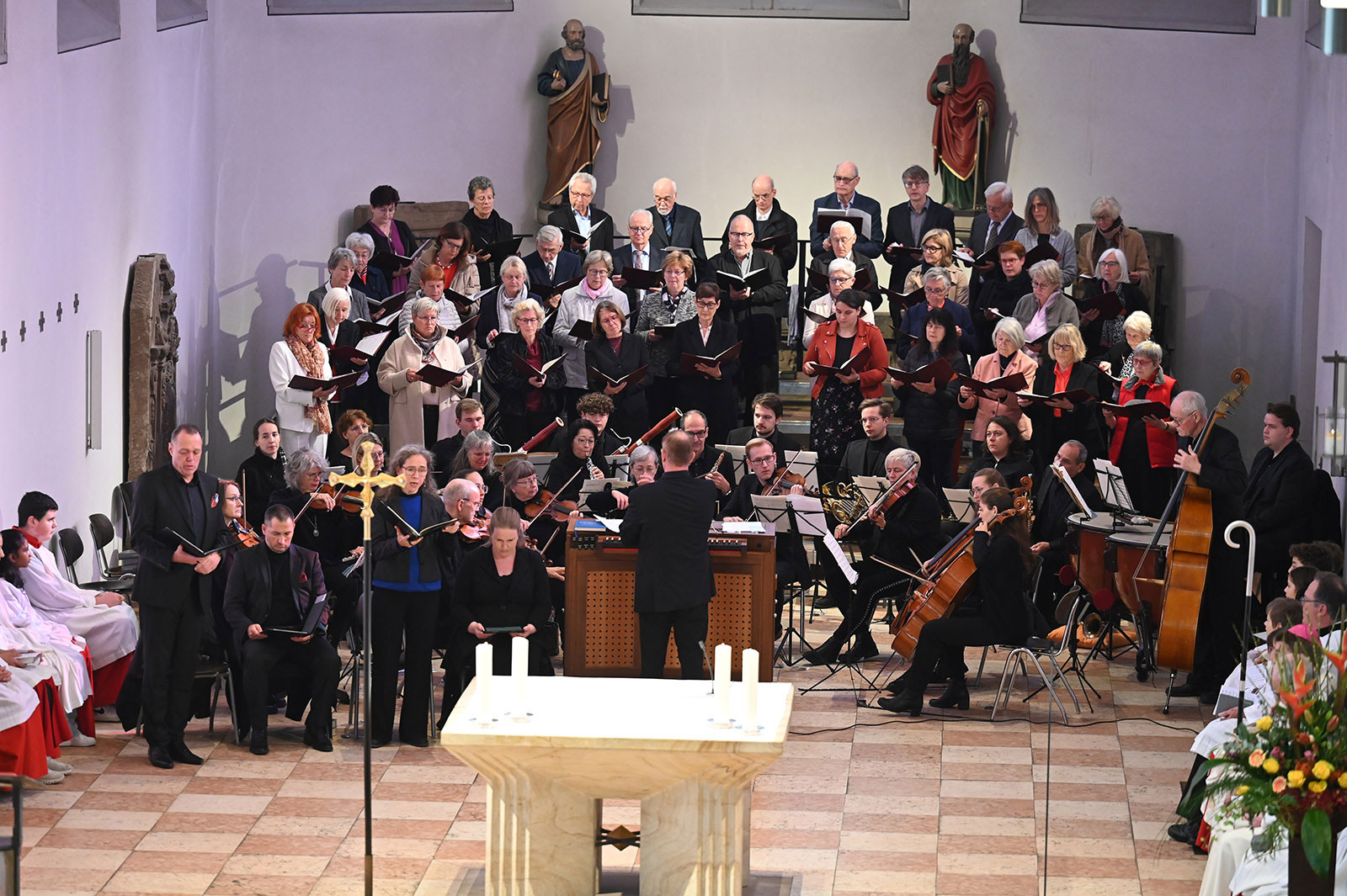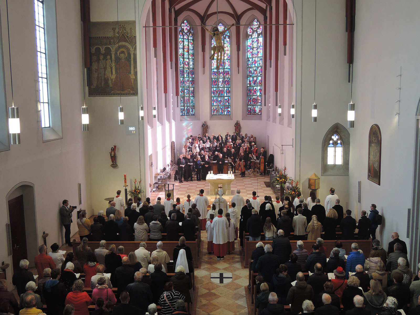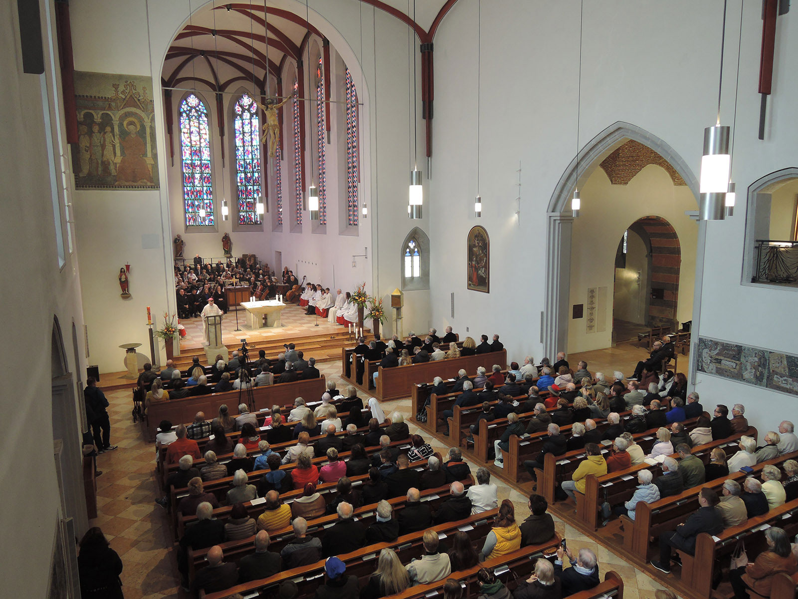 Der Bischof erinnerte in seiner Predigt, wie viele Gläubige über die Jahrhunderte hinweg im Deutschordensmünster Hoffnung und Lebenskraft aus dem Glauben schöpften. Athos-Ensemble, Heilbronner Kantatenorchester und Chor am Deutschordensmünster berührten mit der wunderbaren Jubelmesse von Carl M. von Weber die Herzen der großen Gottesdienstgemeinde.