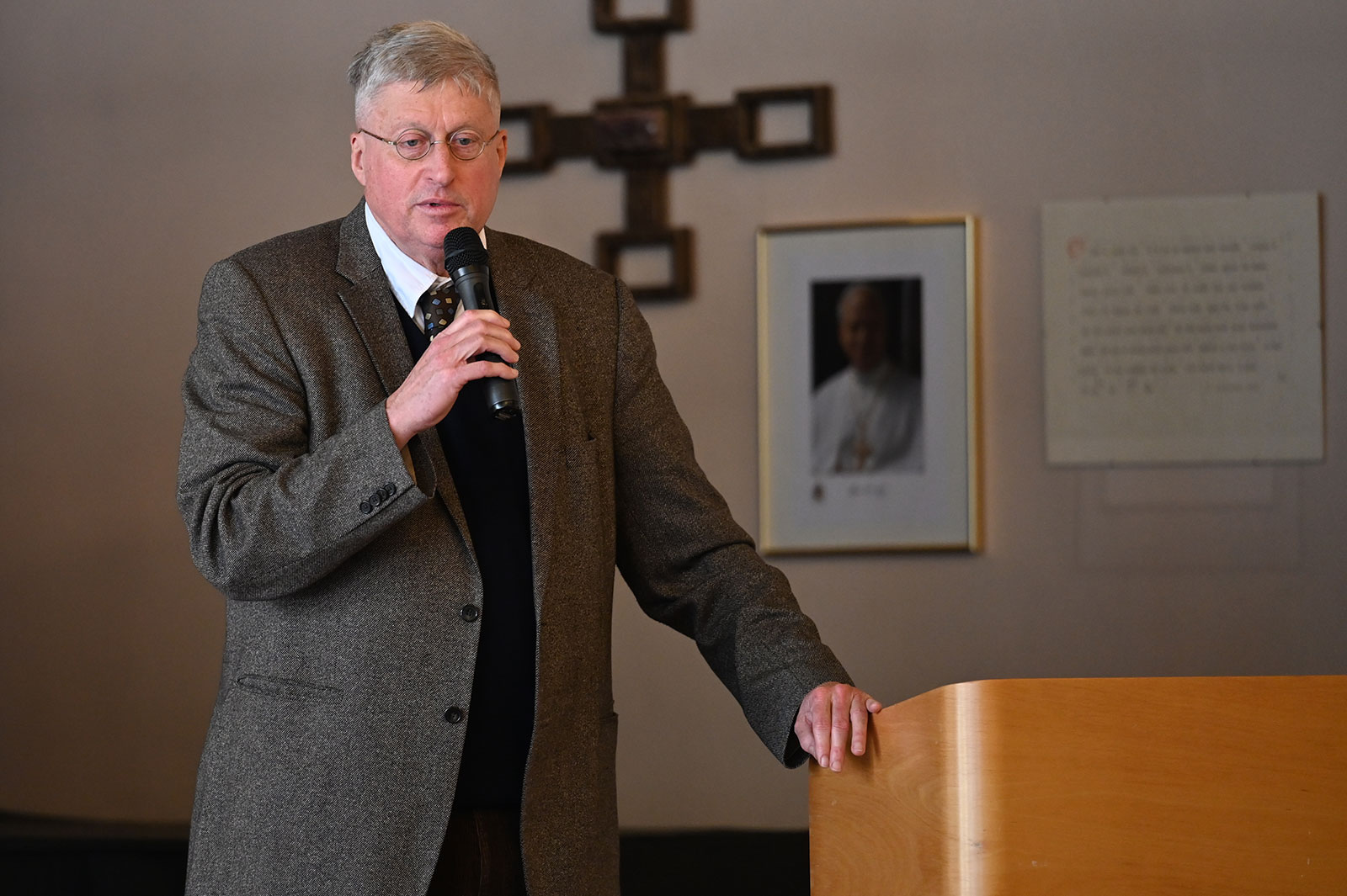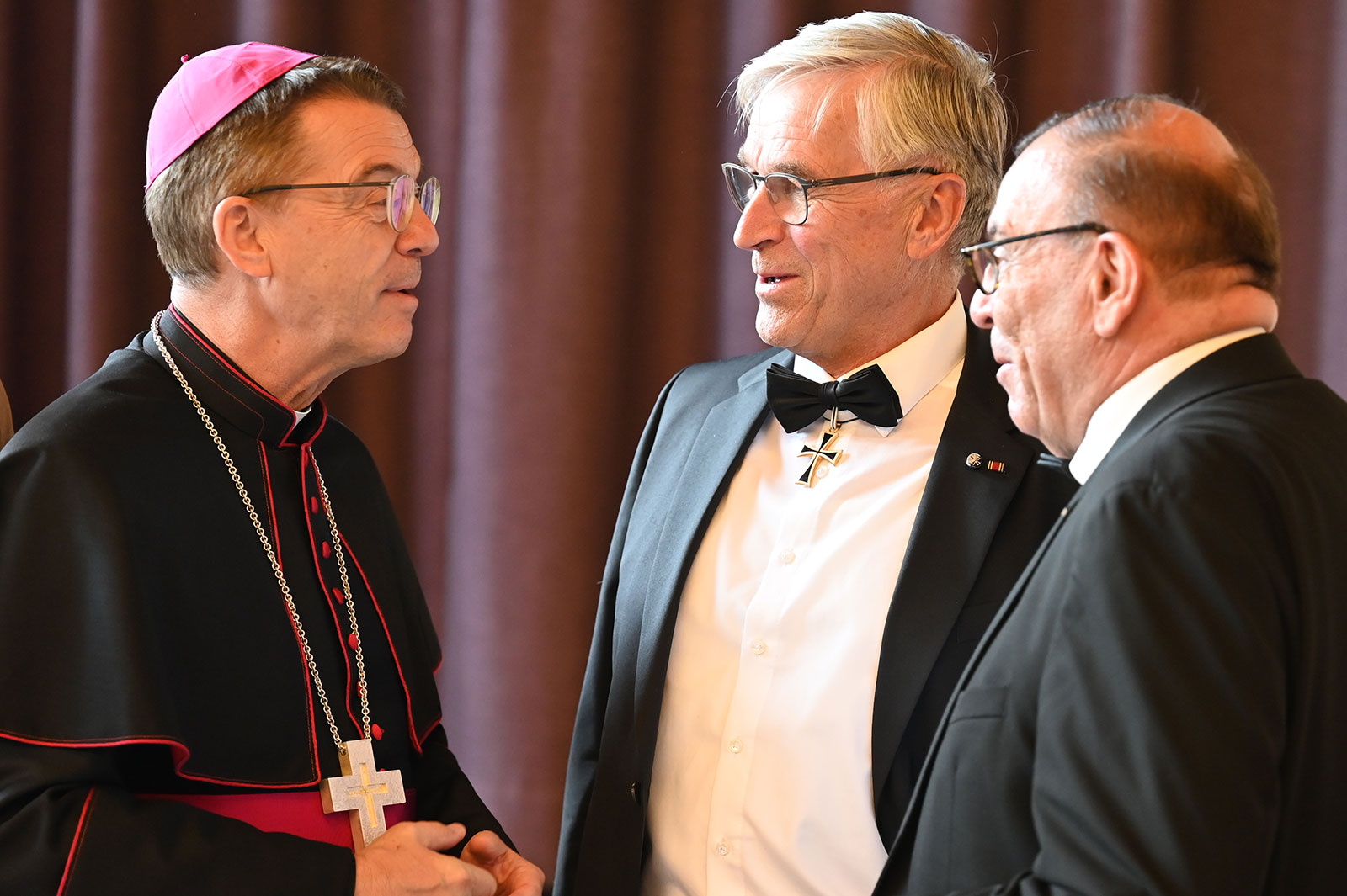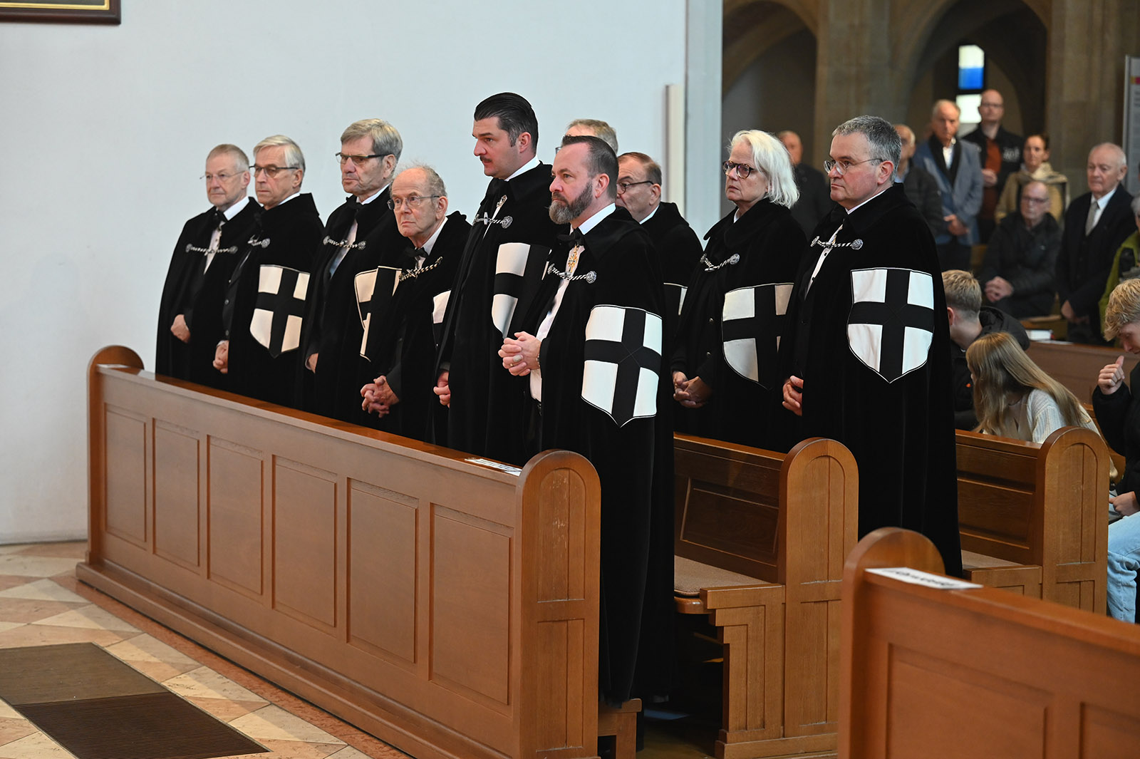 Aber auch Hochmeister Frank Bayard trug zum Schmunzeln bei. Auf Schrenks Frage, ob die heutigen Ordensbrüder noch mit dem Pferd reiten, antwortete er: „Die wenigsten wären so belastbar. Da würde das Gejammer schon im Hof losgehen.“ Er bedauere, „dass die ritterlichen Tugenden eliminiert wurden“, aber der Grundsatz „Not sehen und helfen“ gelte immer noch für die 75 Brüder, 64 Schwestern und rund 950 Familiaren, die sich in vielfältiger Weise vom Kinder- bis Pflegeheim, dem Schuldienst oder in der Suchthilfe engagieren. „Da wird sehr viel sozial Karitatives im Alltag versucht.“