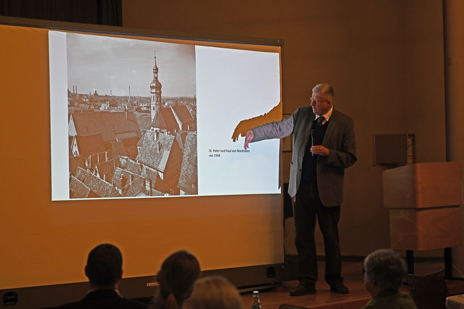 Nach einem gemeinsamen Mittagessen führte Dr. Joachim Hennze in einem spannenden Vortag anhand historischer Bilder aus, wie es zu der prächtigen barocken Renovation des Deutschordensmünsters 1725 anlässlich des 500-jährigen Jubiläums kam.