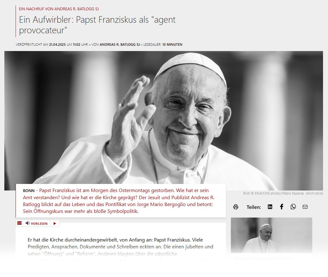 „Andate Avanti – Geht voran!“ Nachruf auf Papst Franziskus