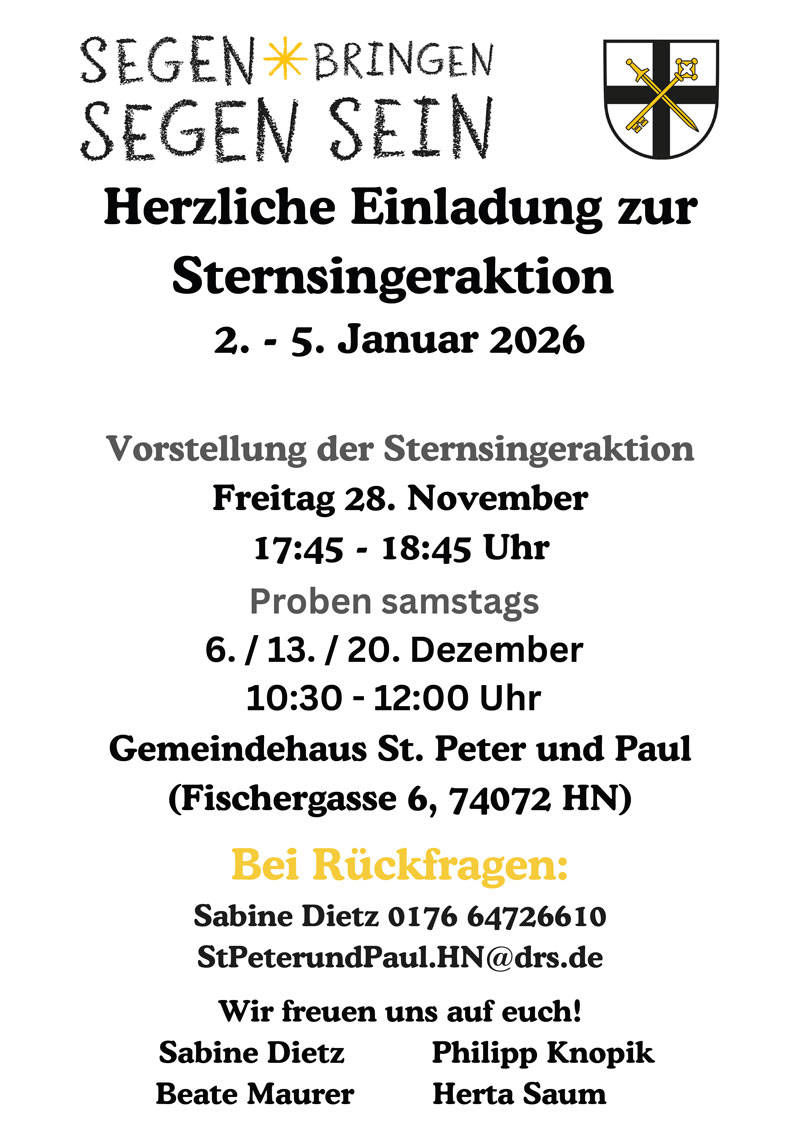 die Katholischen Kirchengemeinden in Heilbronn bilden seit 1. September 2025 eine Seelsorgeeinheit. Vor der Neuwahl des neuen Kirchengemeinderates im März dieses Jahres haben die „alten Räte“ noch eine Kooperationsvereinbarung unterzeichnet und den Zusammenschluss zu einer Seelsorgeeinheit bei unserem Bischof in Rottenburg beantragt.